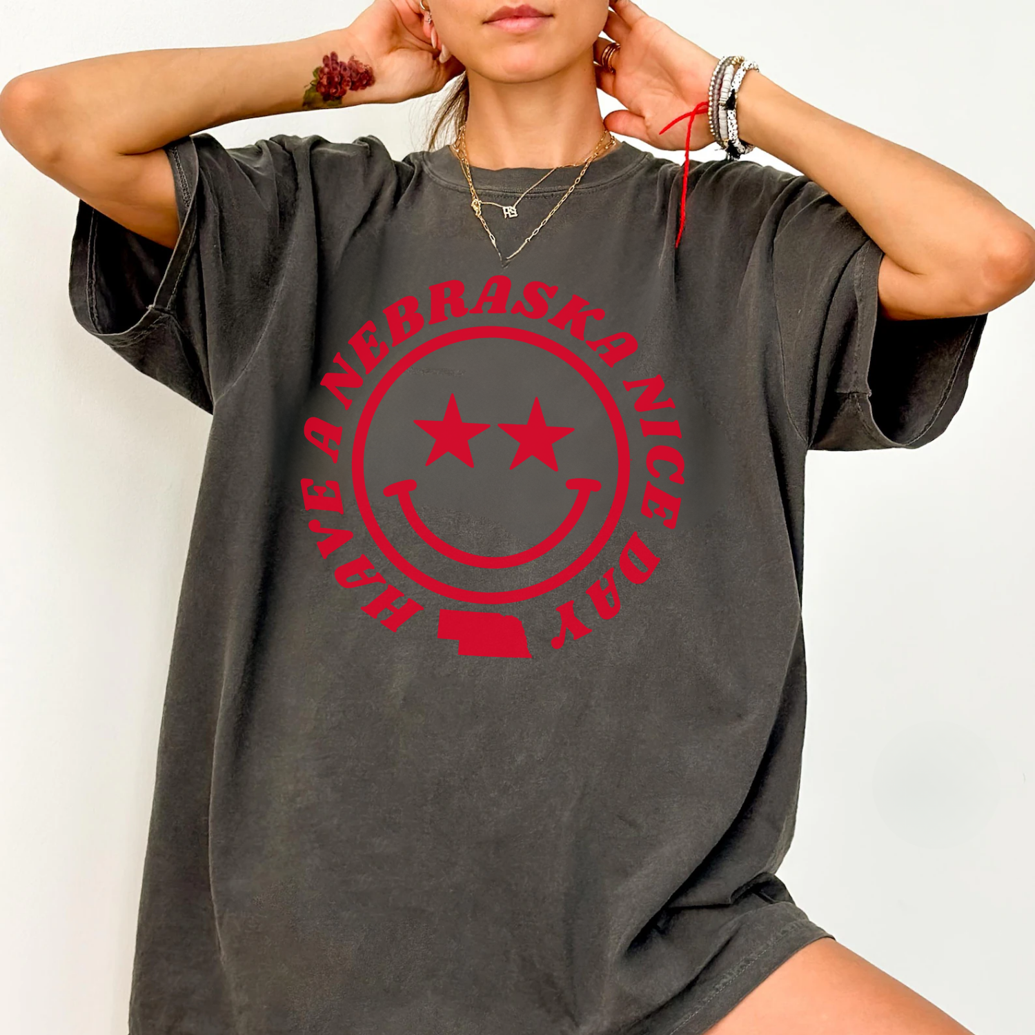 Care: Machine wash cold with like colors; tumble dry low. Do not iron directly on design.